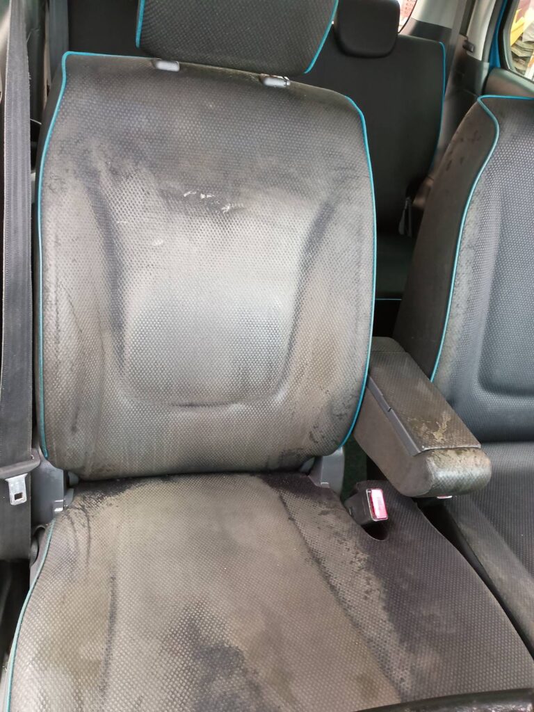 今回ご紹介するのは、長年の使用でシート全体に蝋のようにこびりついた汚れを除去した車両です。